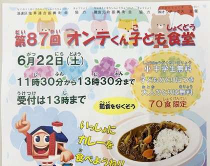 (株)オンテックスが、6月22日(土)に企画してくださっています。いつもありがとうございます。→オンテくん子ども食堂