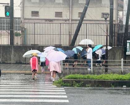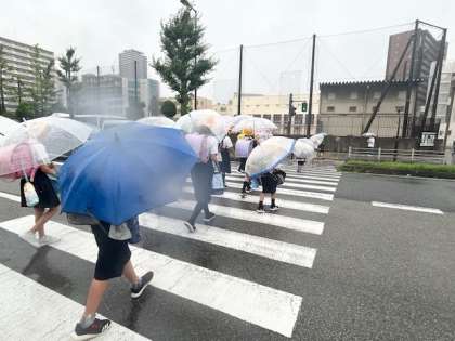 朝から雨と風が強かったので、学校前の歩道橋を渡らず、なにわ筋を横切りました。地域、保護者の皆様、教職員の皆さん、ありがとうございました。