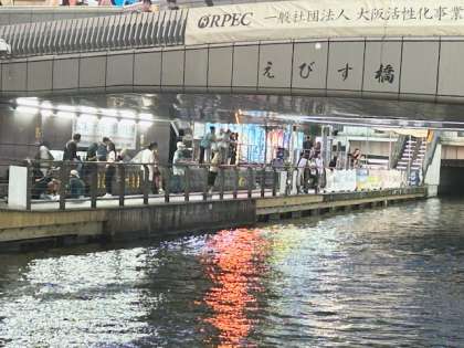 午後9時すぎのグリ下(えびす橋下)は、10代と見られる若者たちが集まっています。