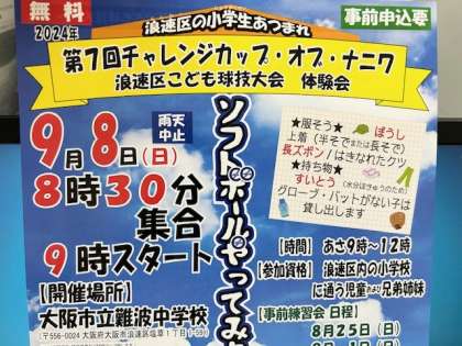 9月8日(日)は、難波中学校に集まれ。