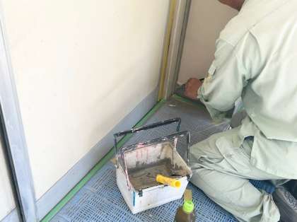 管理作業員の日野さん。暑い中ですが、壁の塗装などをしてくださっています。