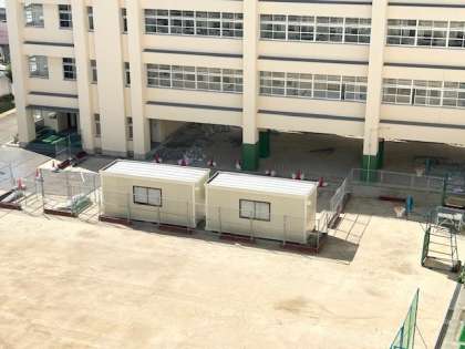 ピロティの工事をしています。子どもたちの遊び場が狭くなることが、残念です。
