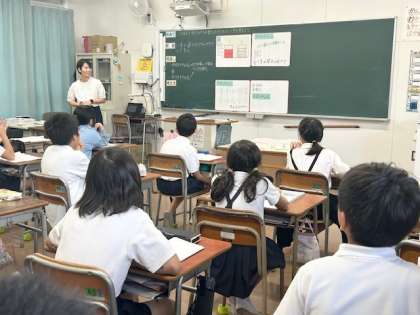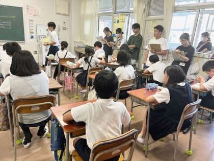 6時限目に5年2組の村山先生が算数の授業を公開しました。たくさんの先生方が参観して、学びあいました。子どもたちも大張り切りです。