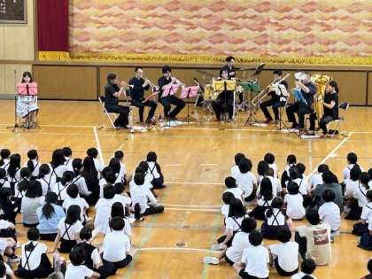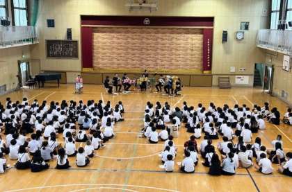 今日は、講堂で音楽鑑賞会をしました。プロの楽団の皆さんによる演奏は、迫力がありました。