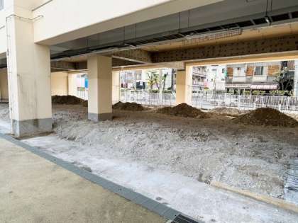 南校舎のピロティを教室に改造する工事が進んでいます。