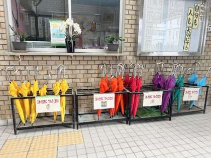玄関の置きがささんたちへ。昨日は帰りに雨が降って困ったけれど、わたしたちはとても助かりました。使わせてくれて、ありがとう。