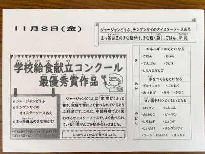 今日の献立は、献立コンクールの最優秀賞作品です。