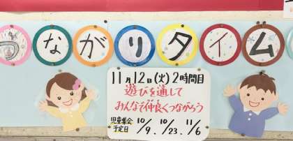 明日の2時限目は、たてわりグループで遊ぶつながりタイムです。楽しみにしてください。