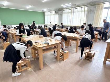 3組 図画工作 ひみつのすみか のこぎりを使って