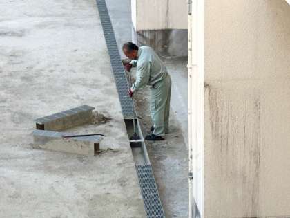 管理作業員の日野さん、運動場の側溝を清掃してくださっています。