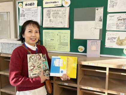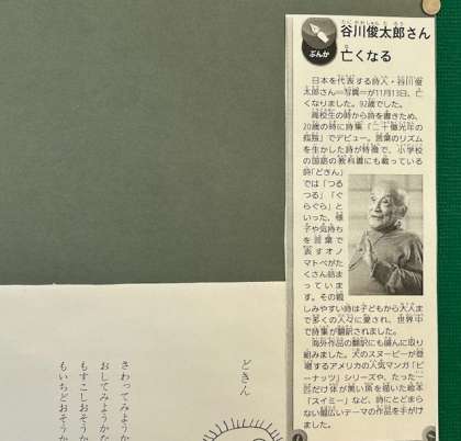 先日亡くなられた谷川 俊太郎さんの作品たちです。学校司書の大谷先生、いつもありがとうございます。学校図書館がますます充実しています。
