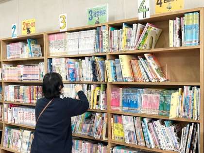 学校司書の大谷先生です。学校図書館の整備に励んでくださっています。