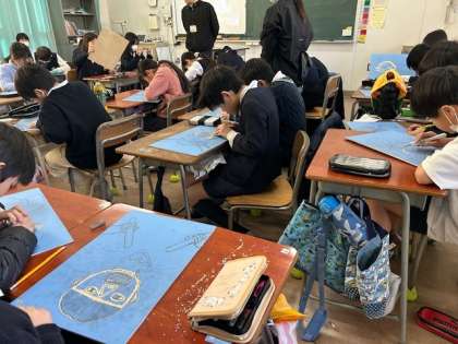 3組 図画工作 彫刻刀で似顔絵をほる