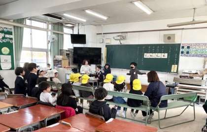 立葉幼稚園と小田町保育所のお友だちが、小学校を訪れてくれました。1年生の子どもたちが、なわとびやあやとりを披露しました。