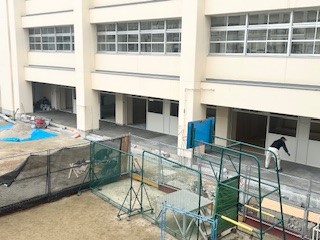南校舎のピロティを教室に変えています。