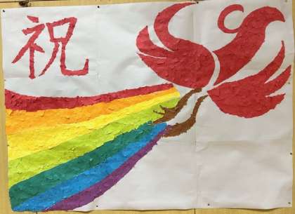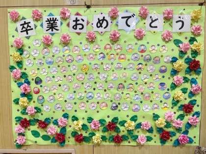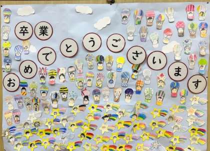 1〜5年生の子どもたちが心を込めて作りました。ご卒業、おめでとうございます。