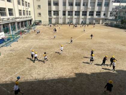 休み時間の運動場。今日は、ぽかぽか天気です。