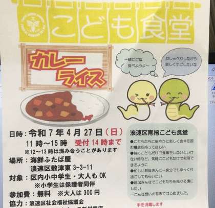 週末に、子ども食堂が行われます。主催の皆さま、子どもたちのために、ありがとうございます。