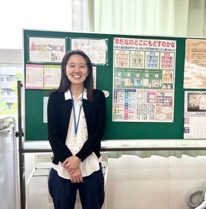 学校司書の佐々木先生。子どもたちが読書好きになるよう、工夫してくださっています。