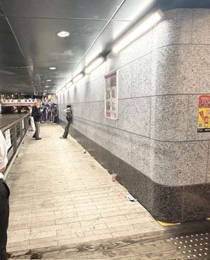 電話相談の反省会後に、グリ下を通って帰りました。午後9時過ぎの一帯には、若者たちの姿は見られませんでした。時間が早いのでしょうか。排除ではないと説明されている笑、世間一般には排除としか見えない塀の効果でしょうか。