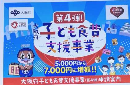 大阪府子ども食費支援事業のお知らせです。後日、子どもたちにプリントを配ります。