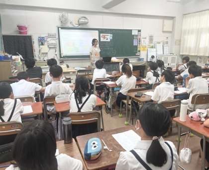 保健の学習で、初経(はじめての月経)と精通(初めての射精)など、体の変化について学びました。授業は、保健室の清田先生です。