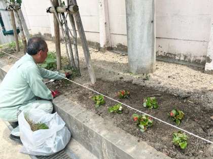 管理作業員の日野さんです。暑い中ですが、子どもたちがほっとできる環境を作ってくださっています。