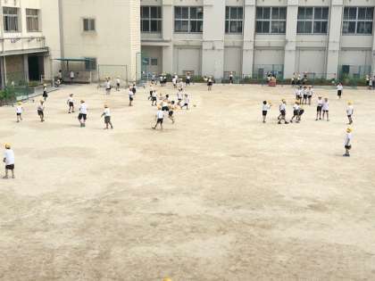 1時限目後の運動場。久しぶりに外で遊ぶことができました。