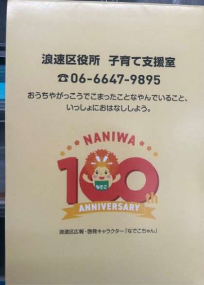 浪速区役所子育て支援室の皆さんが作ってくださった素敵なメモ帳です。なんとなんと、浪速区制100周年を記念して、子どもたち全員にプレゼントしていただきました。