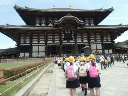 東大寺や五重塔など、国宝や世界遺産を見ることで、学習を兼ねた活動となりました。また、若草山にも登り、奈良の街並みを見渡すことができました。きれいな景色に児童は驚いた様子で、気持ちよさそうに遊んでいました。奈良の鹿にテンションが上がり、大仏の大きさに驚き、若草山からの景色に感動した遠足になりました。