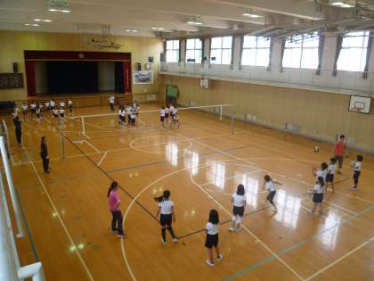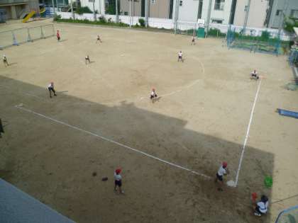 今日の放課後から、フレンズ・カップ・オブ・ナニワの練習が始まりました。ソフトボール(運動場)とバレーボール(体育館)の2種目を本校の先生方が交代で指導します。保護者の皆様も、お越しくださっています。子どもたちは、1日目とは思えないほど一生懸命にがんばっています。何よりも、先生方からアドバイスを受けると、いつもながら素直にきき、元気な返事がかえってくることに、感心しました。気温は上昇して汗ばむほどですが、一番熱くなっているのは、実は指導に当たってくださっている先生方です。