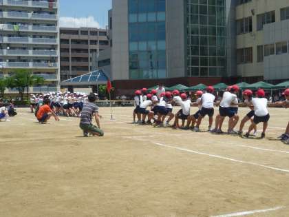 児童集会の後、6年生が難波中学校に行き、第67回体育大会を見せていただきました。大きな運動場で、力いっぱい競技をするお兄さん、お姉さんの迫力に、戻ってきた6年生は感動していました。「大むかでの3年生のチームワークがすごくよかった。」「借り物競走がおもしろかった」さらに、校区小学生種目として、栄小学校6年生との混合チームで紅白綱引きをさせていただき、いい思い出ができました。きびきびとした中学生のひとつひとつの動き。先生方と生徒たちがひとつになったアットホームな雰囲気。団結力。6年生は、1年後には、自分たちもこの場に立っている・・・という自覚とあこがれを心に深く刻み込みました。難波中学校の生徒たち、そして教職員の皆様の素晴らしい取り組みに、心よりお礼申しあげます。