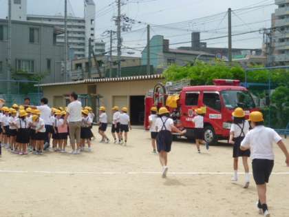 2時限目は、避難訓練(火災想定)をしました。不意の火災や地震、風水害などの場合に子どもたちの生命と安全を守るため、実施しています。子どもたちは、「押さない」「走らない」「しゃべらない」「もどらない」の約束を見事に守り、立ち会ってくださった浪速消防署の方から、「とても静かに避難できました」と、おほめいただきました。うれしいです。
