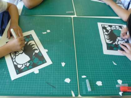 手づくりクラブです。熱心に切り絵をしています。みんなの集中力がすばらしい!