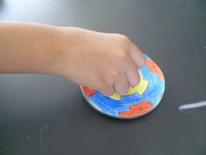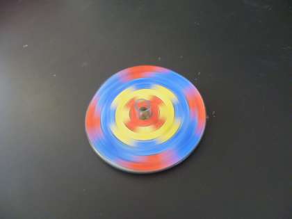 科学クラブは、三原色を使ったCDゴマを作っています。コマを回すと、不思議な感覚です。