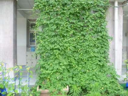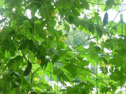 今朝の雨は、校庭の樹木にとっては「恵みの雨」です。職員室前のゴーヤも、どんどん茂ってきています。毎日観察して、育ち具合を報告してくれる子どももいます。子どもたちに見守られて、大きく育つといいですね。