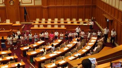 初めて見た本会議場の大きさに驚いたり、緊張しながらも議長や発表者などの役割に立候補したりと、初めての経験をたくさんしました。
