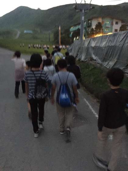 本日、最後の活動ナイトハイクでは、虫の声、川の流れる音など、耳で自然を感じました。