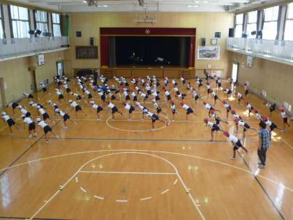 10月2日の運動会にむけて、練習が始まりました。1・2年生は、体育館でダンスの練習です。軽快なリズムにのって、かわいらしい振付けがいいですね。