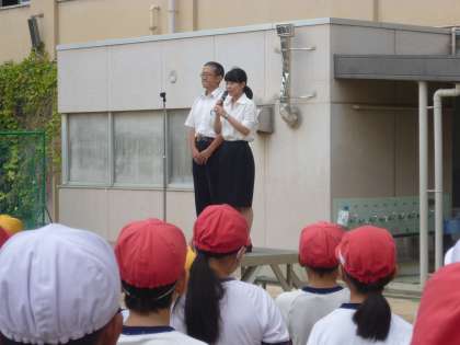 今日から関西大学3回生の川崎奈那さんが、教育実習のために本校に来られました。6年1組で、小学校の先生になるための勉強を続けます。もと塩草小学校の卒業生で、子どもたちにとっては、先輩になります。全校朝会であいさつをしていただいた後、教室でも簡単な自己紹介をしました。10月7日までの5週間、がんばってください!!
