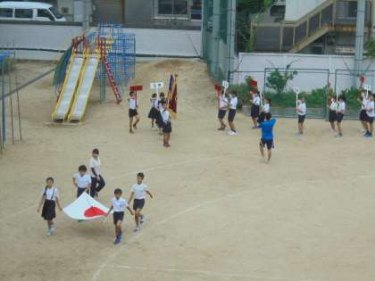 今日の昼休み、運動会の開会式練習をしました。初めての練習でしたが、どの子どもも頑張っています!