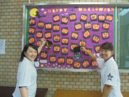 早いもので、10月になりました。今月の玄関掲示は、ハロウィンにちなんだものです。4年生の先生と子どもたちが作ってくれました。中をめくると・・・ぜひ実物をご覧ください!!