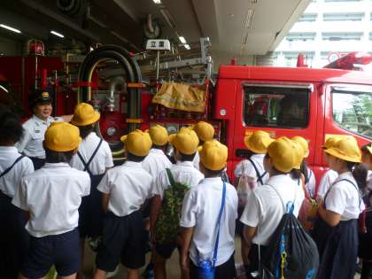 台風の心配もありましたが、無事に消防署の見学に行くことができました。