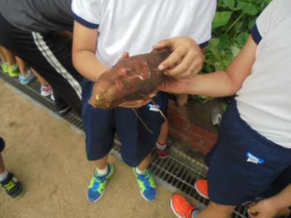 今日、2年生が5月に植えたサツマイモを収穫しました。