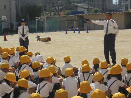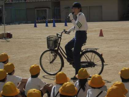 浪速警察署から坂尾泰彦様と舞田弘美様がお越しくださり、自転車の正しい乗り方について、直接指導をしていただきました。4年生以上の子どもたちが、順番に自転車に乗りました。自転車大会に参加した6年生の子どもたちが、素晴らしい見本を見せてくれました。