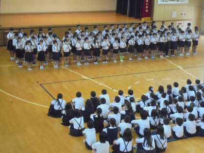 今日の児童集会は、3・4年生が「なにわ子ども人権文化祭」(難波中学校)出演のリハーサルをしました。素晴らしい合唱と合奏でした。(拍手!!)この後、難波中学校へ向かいます。