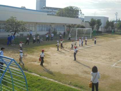 難波支援学校に着きました。ソフトボールチームとバレーボールチームが練習をしています。試合を通して、他校の子どもたちとの親睦を深めましょう!!