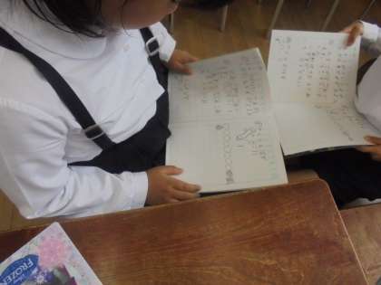 自分の考えをまとめるために、となりの席のお友だちと話し合っています。このようなペア学習は、理解をすすめるのに大変有効です。