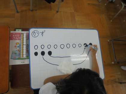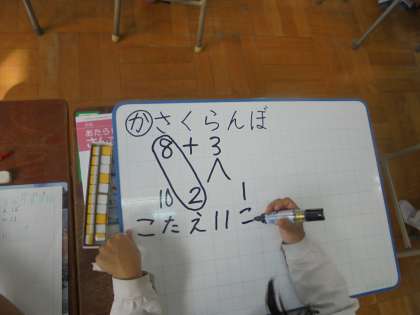 子どもたちが、発表用ボードに考え方を書いています。