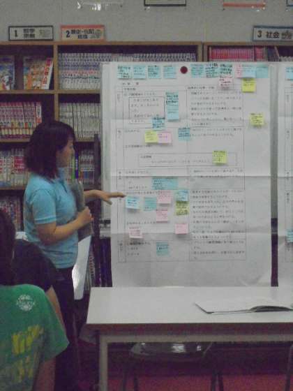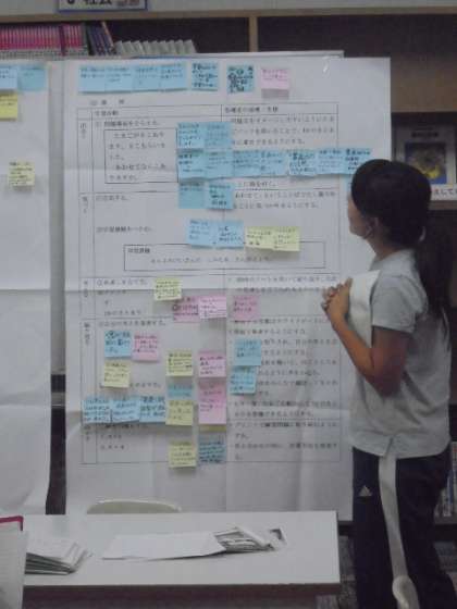 次に、一人ひとりが気づいたことを付せんに書きます。それらをグループでまとめ、全体で交流します。